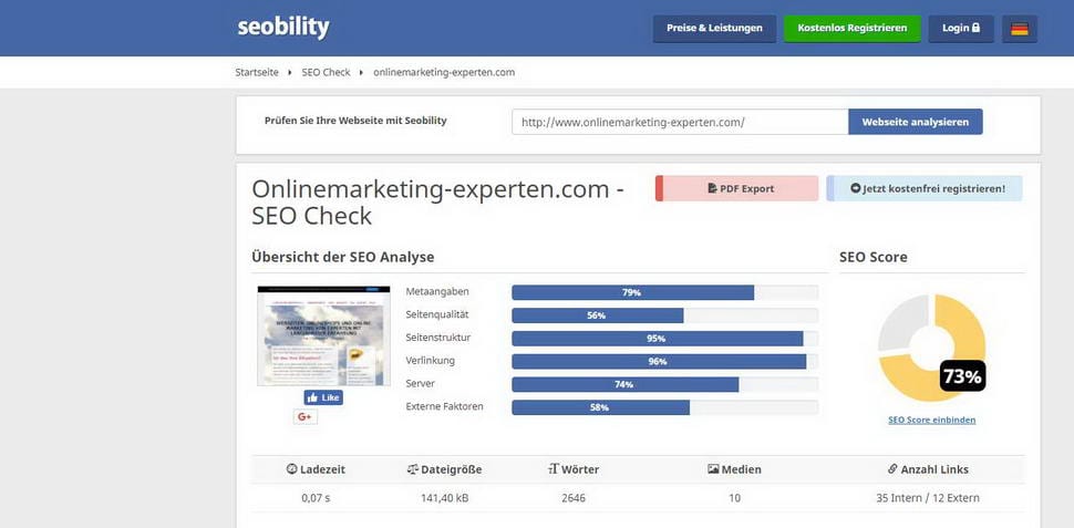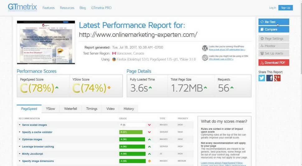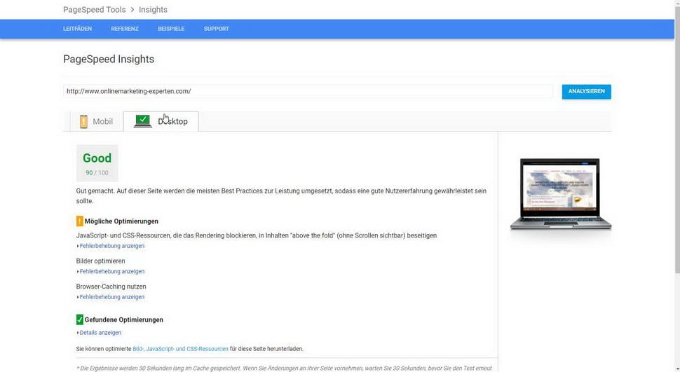 Das Keyword „Online Marketing“ habe ich von 83% auf 97% gesteigert, den SEO Score von 73% auf 89% verbessert und die Seitenladezeit verkürzt. Dazu noch die Datenbanabfragen etwas reduziert und so die Voraussetzungen für eine optimale Suchmaschinenaufnahme deutlich verbessert.
