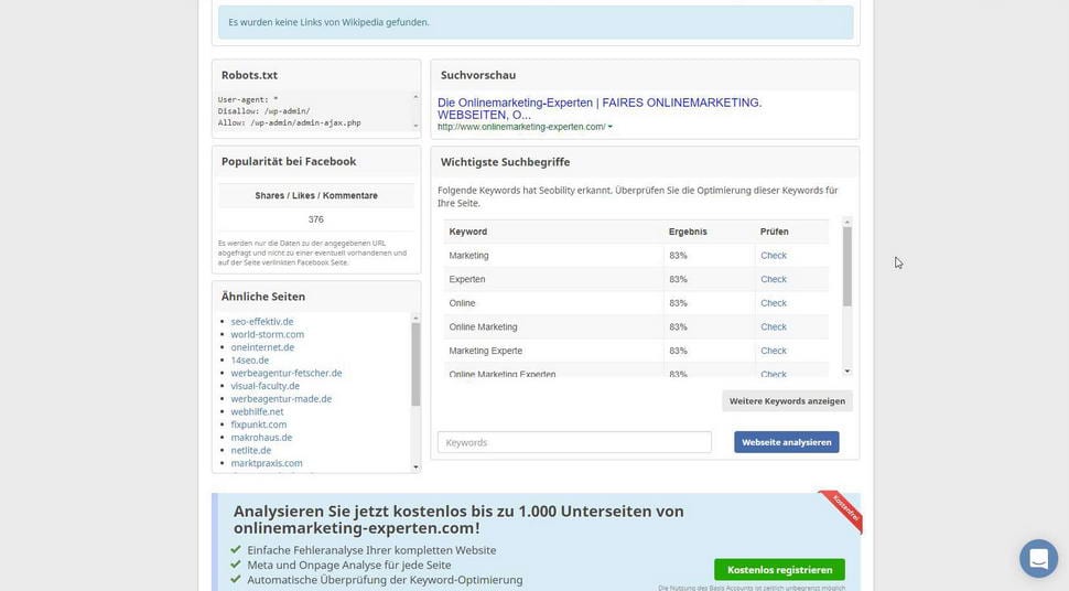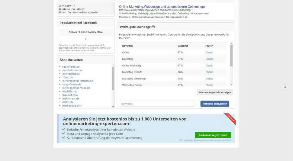 Keywords nach der Optimierung auf „Online Marketing“ (jetzt 97%) optimiert: